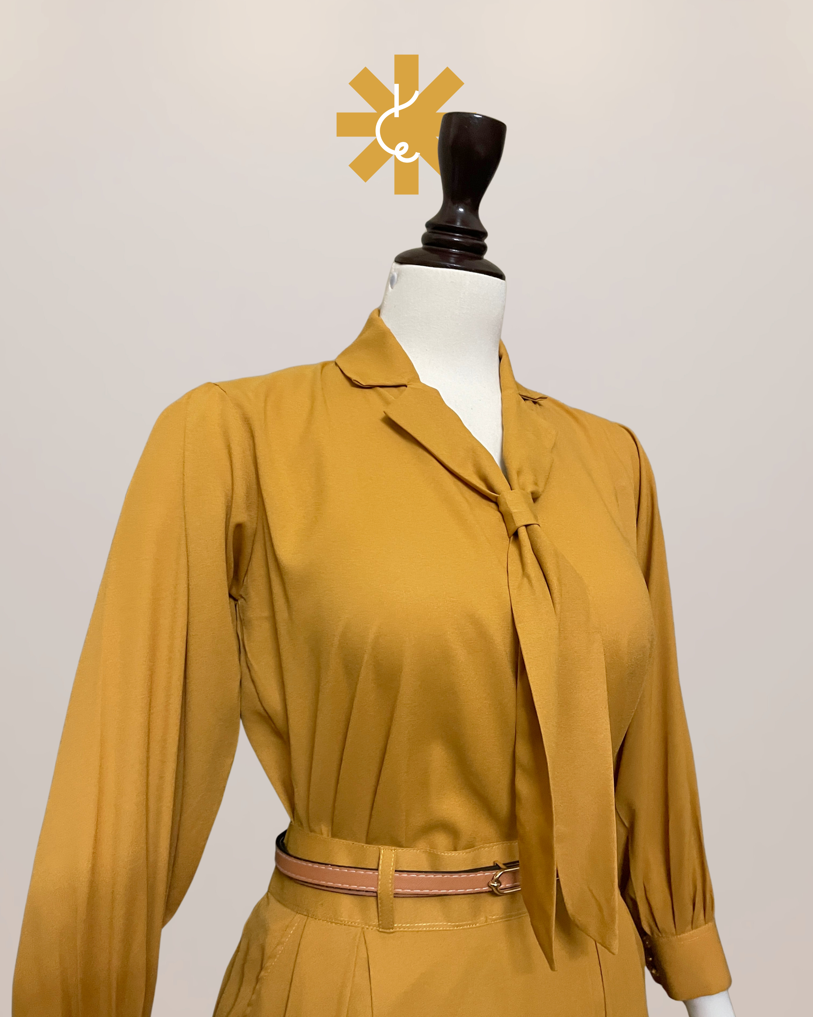 Tie-Neck Formal Shirt - Honey Mustard
